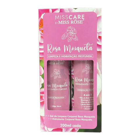 O Kit Gel de Limpeza + Hidratante Corporal de Rosa Mosqueta da Miss Rôse oferece um ritual completo de beleza e autocuidado com ativos poderosos e um perfume floral marcante.